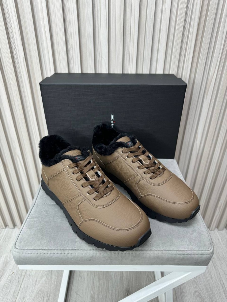 Мужские кроссовки из натуральной кожи Kiton бежевые