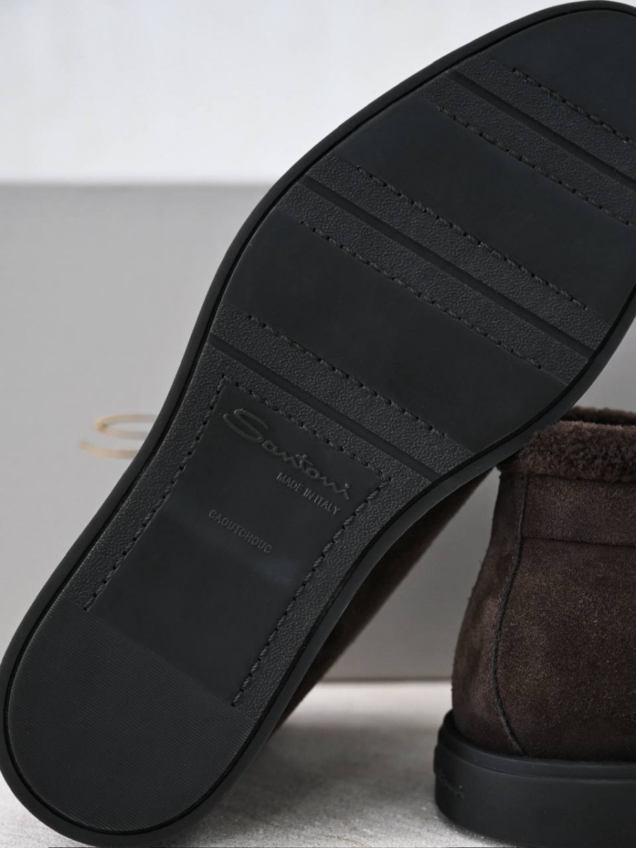 Мужские лоферы на меху Santoni черные