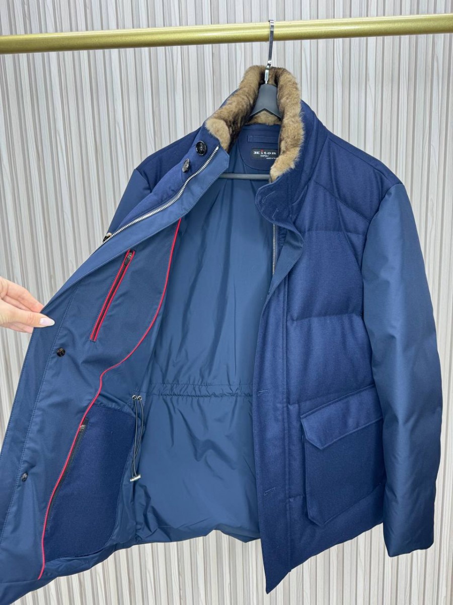 Мужской кашемировый пуховик Kiton синий