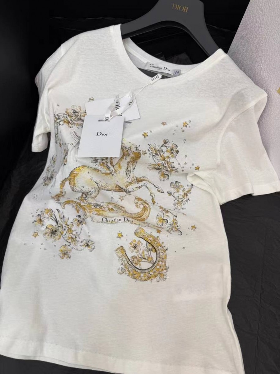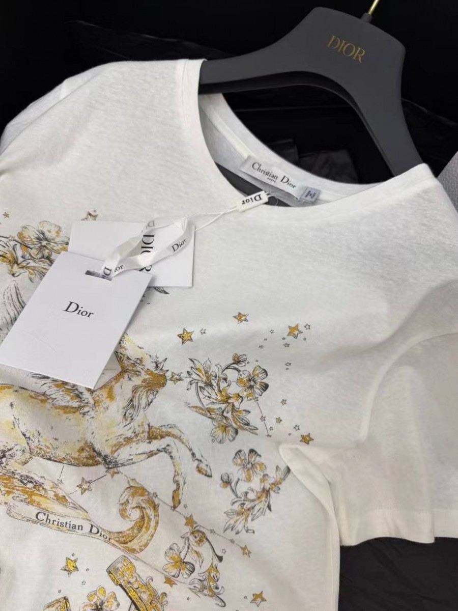 Женская футболка Christian Dior молочная